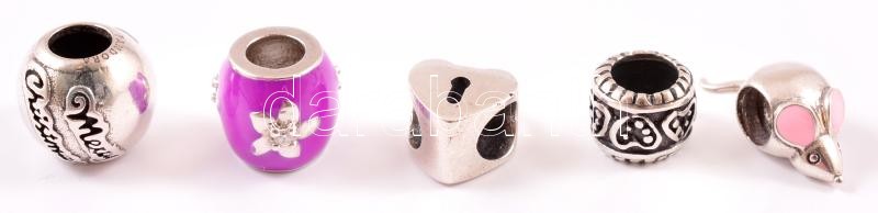 Ezüst(Ag) Pandora charm, 5 db, jelzett, bruttó: 9 g