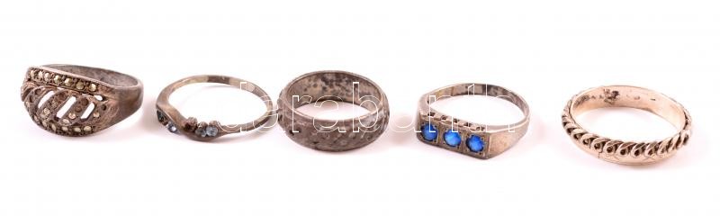 Ezüst(Ag) gyűrű tétel, 5 db, jelzettek, kőhiánnyal, bruttó: 15,5 g
