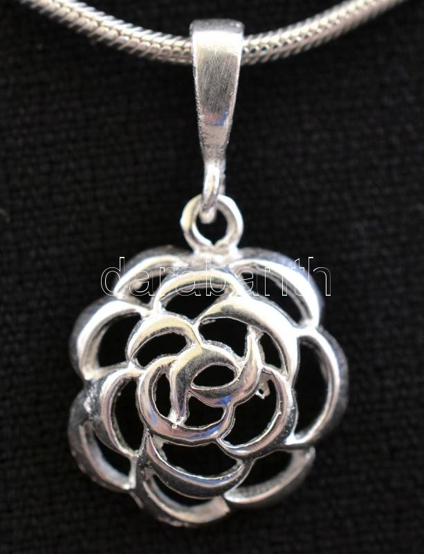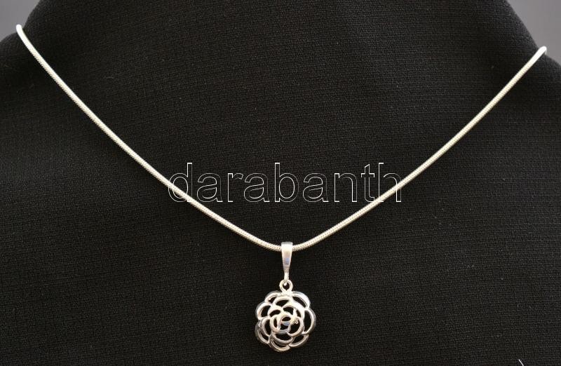 Ezüst(Ag) kígyó nyaklánc, áttört rózsa függővel, jelzett, állítható hosszúság: 45-50 cm, d: 1,4 cm, nettó: 7,5 g