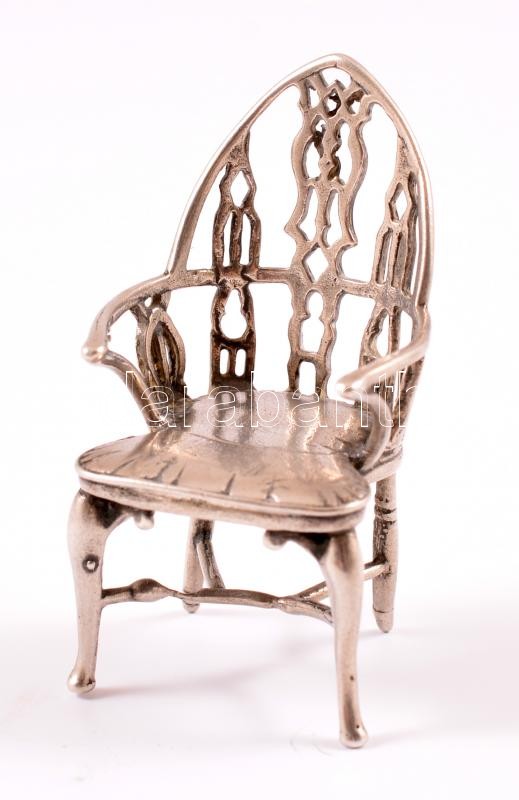 Ezüst(Ag) miniatűr szék, jelzett, m: 4,5 cm, nettó: 19,4 g
