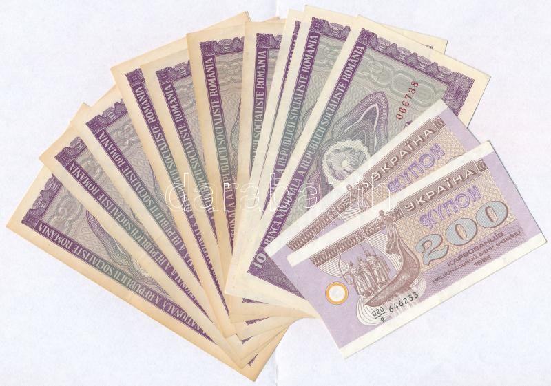 Description: Vegyes: Románia 1966. 10L (11x) közte sorszámkövető sor, pár és egyugrásos pár + Ukrajna 1992. 200K (2x) sorszámkövetők T:II