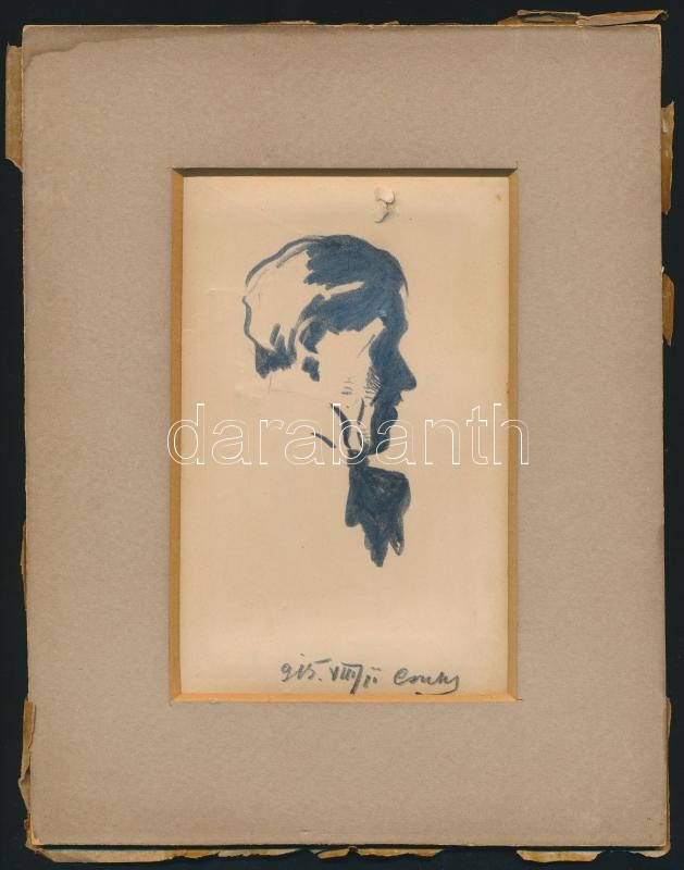 Olvashatatlan jelzéssel: Árnykép. Ceruza, papír, paszpartuban, sérült, 13×8 cm