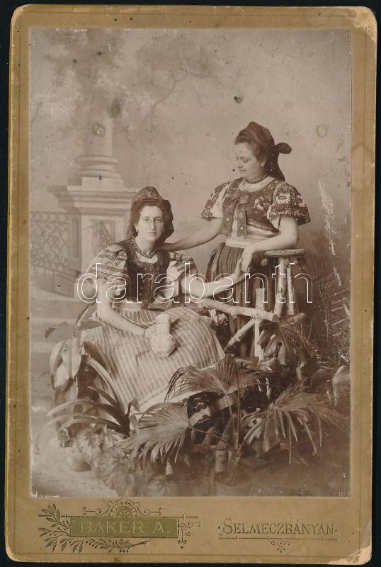 cca 1900 Népviseletes hölgyek, keményhátú fotó Baker Alajos selmecbány...