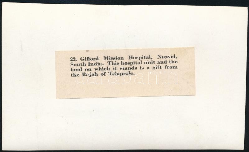 cca 1920-1930 Dél-India, Gifford Mission Hospital, hátoldalon felirato...