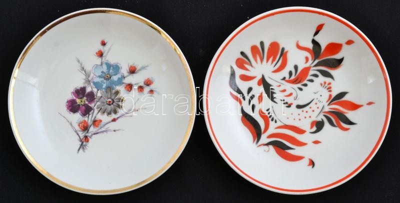 2 db Hollóházi falra akasztható kistányér, az egyik kézzel festett, je...