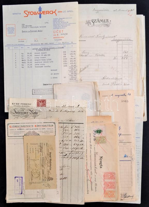 Vegyes okmány tétel: 30 db különféle okmánybélyeges számla