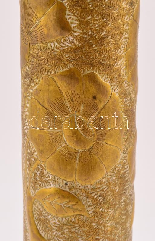 Töltényhüvelyből készült virágmintás váza, m: 26,5 cm
