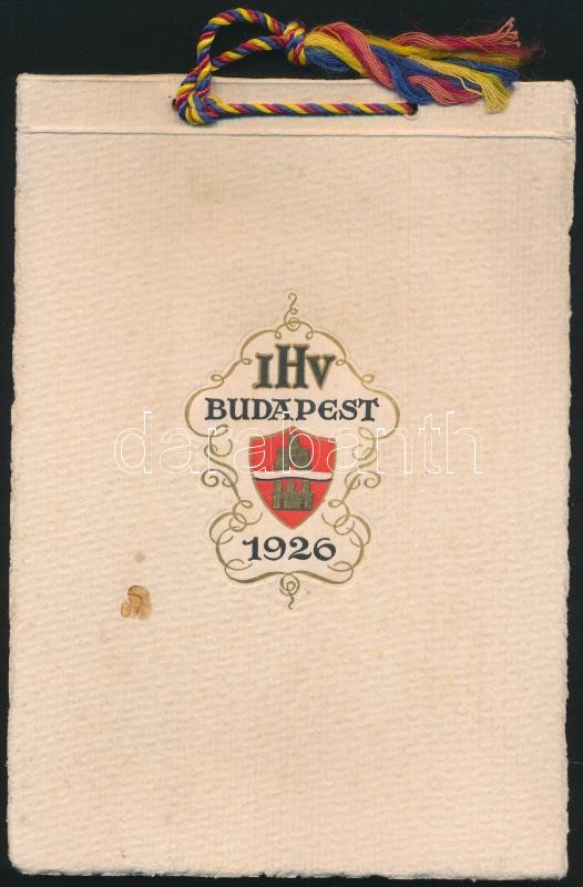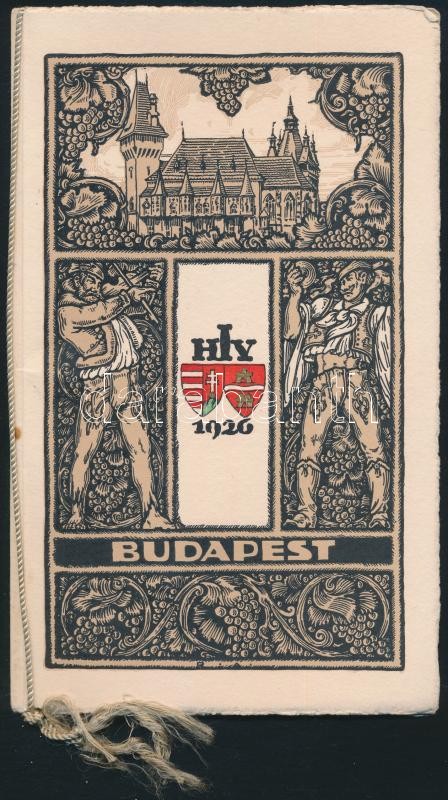 1926 Budapest, Szállodások Nemzetközi Egyesületének 2 programfüzetei. Az egyik többnyelvű (francia-magyar-német) programfüzet, benne egészoldalas képekkel Budapestről, előttük hártyapapírral, rajtuk programleírással. A másik ugyancsak egy programfüzet benne a Mezőgazdasági Múzeumban tartott koncert programjával, valamint a magyar borokról szóló résszel, francia, német és magyar nyelven. Fűzött papírkötésekben, az egyik díszesen illusztrált borítóval.