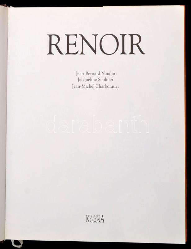 Jean-Bernard Naudin-Jacqueline Sauliner-Jean-Michel Charbonnier: Renoir. 60 különleges recepttel. Művésztársaságban. FordÃtotta: Elsässar Klaudia. Bp.,2003, Korona. Kiadói kartonált papÃrkötés, kiadói papÃr védÅ‘borÃtóban, jó állapotban.