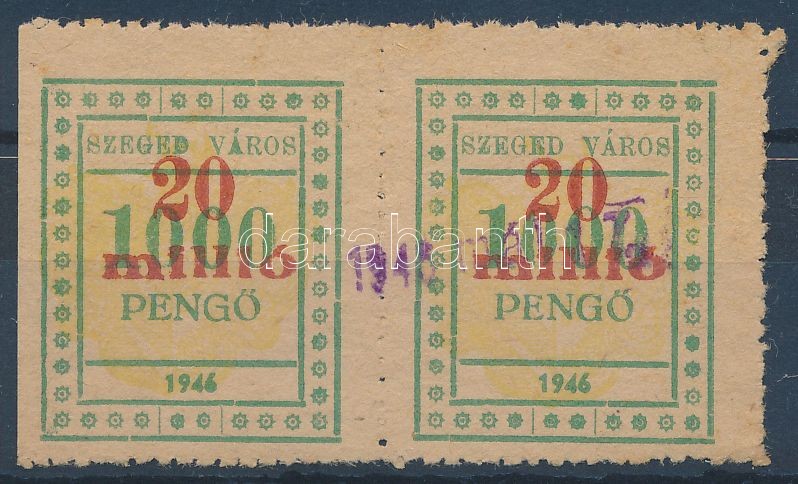 1946 Szeged város okirati illetékbélyeg 20mP/1000P pár (7.000)