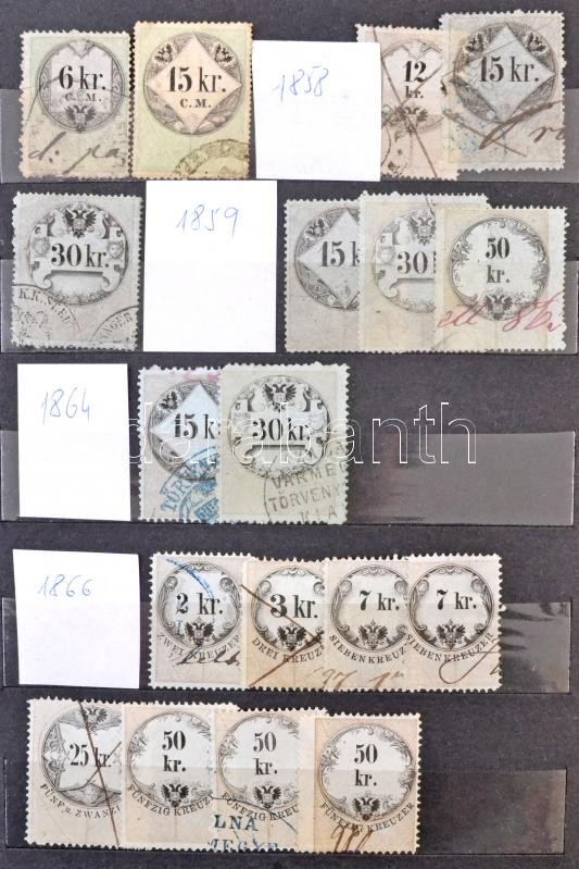 Kb. 780 db magyar okmánybélyeg sok régivel, különlegességekkel, 2 köze...