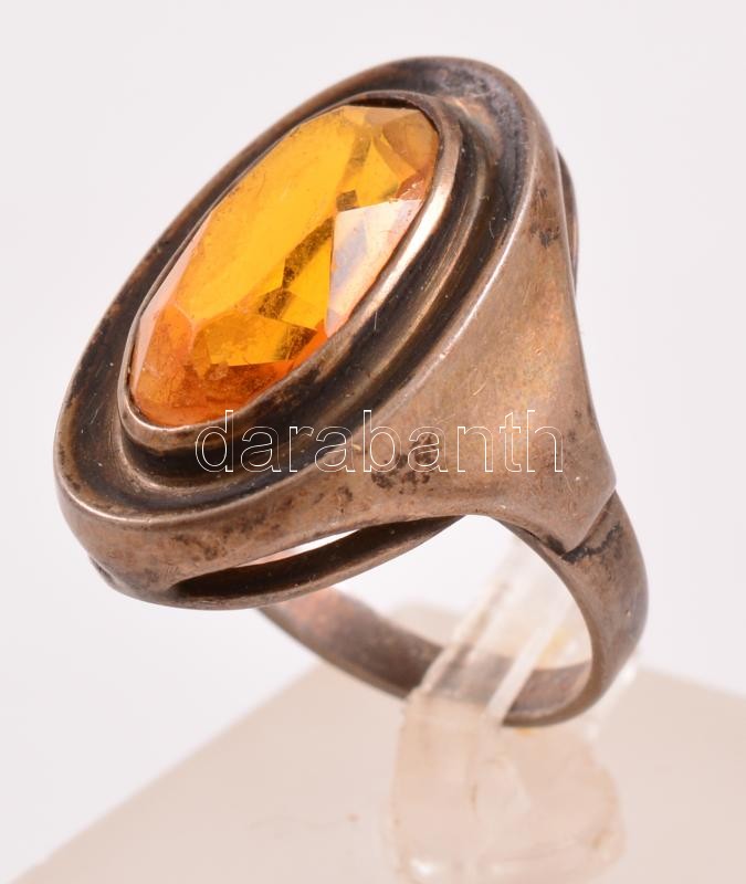 Ezüst gyűrű borostyán kővel 6,2 g díszdobozban