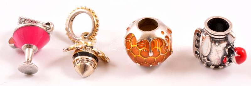 Ezüst(Ag) Pandora jelzéssel charm, 4 db, jelzett, bruttó: 8,9 g