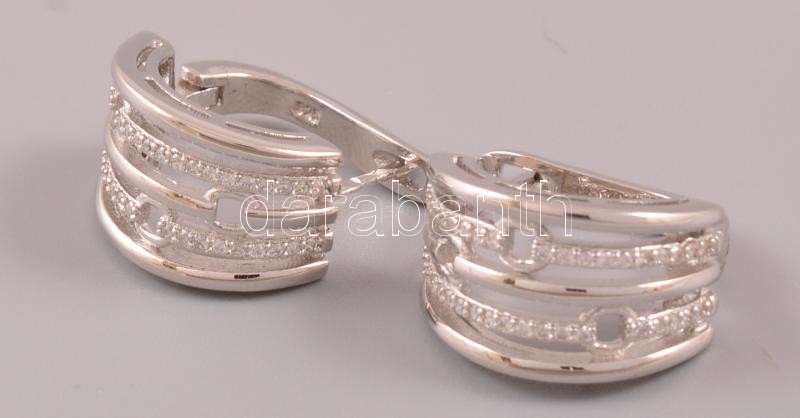 Ezüst(Ag) apró kövekkel díszített áttört fülbevalópár, jelzett, 1,7×1,2 cm, bruttó: 7,3 g