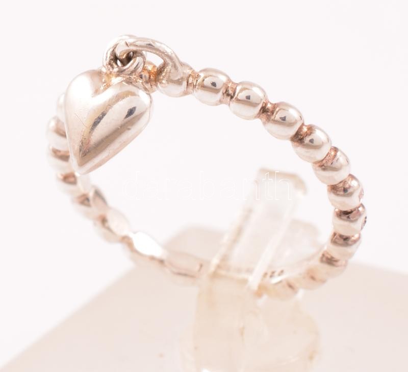 Ezüst(Ag) gyűrű szív függővel, jelzett, méret: 52, nettó: 2,2 g