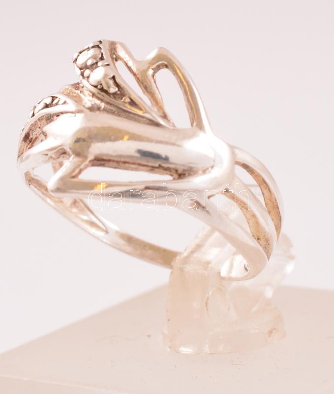 Ezüst(Ag) levélmintás gyűrű, jelzett, méret: 53, bruttó: 2,1 g