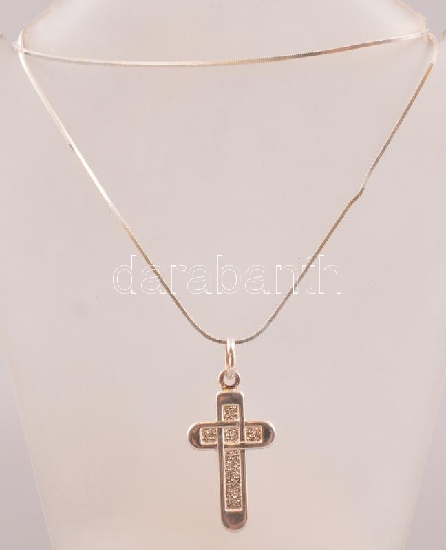 Ezüst(Ag) négyszögletes kígyó nyaklánc, kereszt függővel, jelzett, h: ...