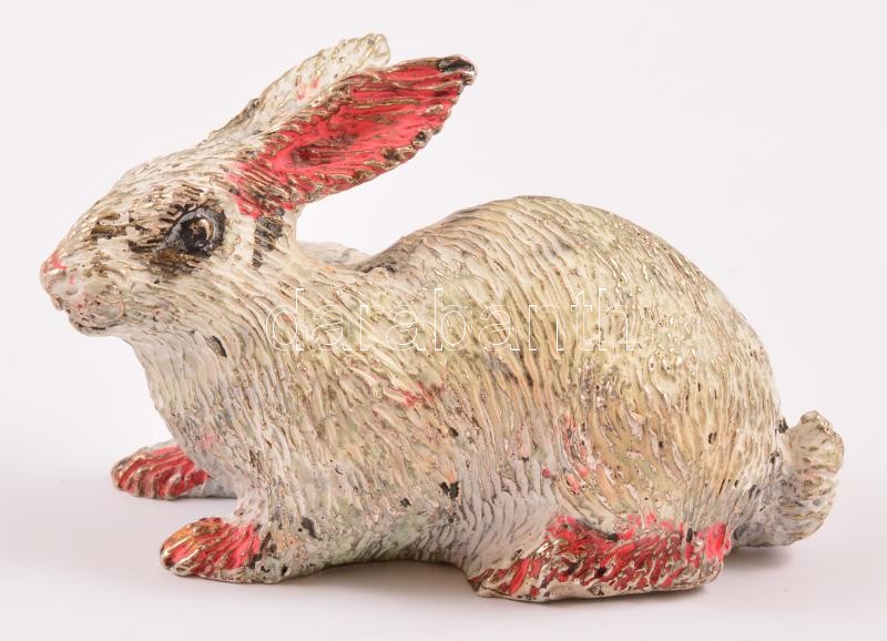 Ezüst(Ag) nyúl, festett, jelzett, 7,5×3×4 cm, bruttó: 85,8 g