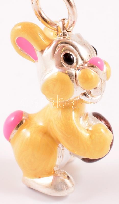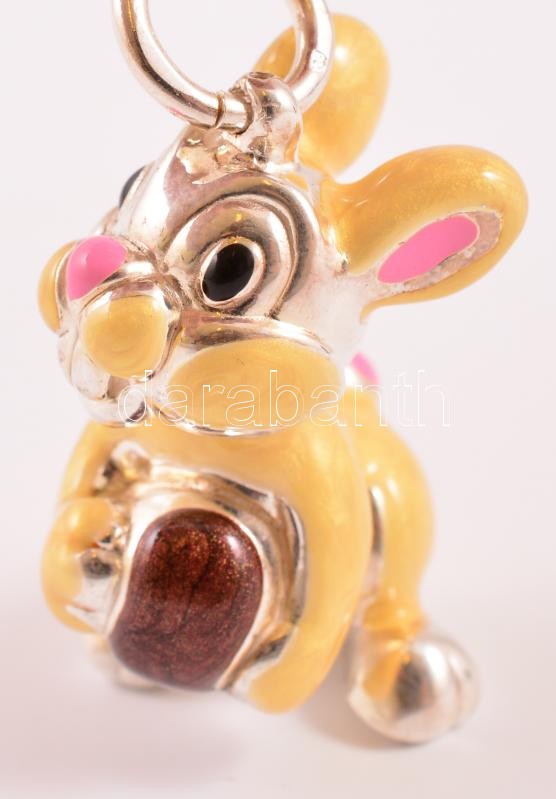 Ezüst(Ag) zománcozott nyuszi medál, jelzett, m: 3,5 cm, bruttó: 7,3 g