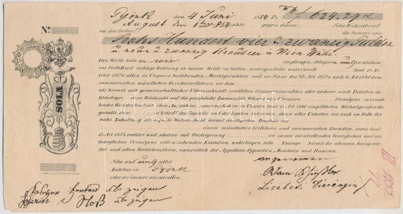 1851-1855. 3db váltó, közte 2db német nyelvű "SOLA", kitöltve, 6kr és 30kr bélyegzéssel T:III