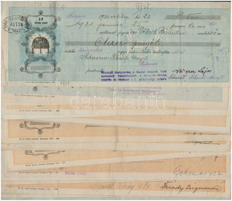 1930-1942. 27db-os vegyes kitöltött váltó tétel bélyegzésekkel és ille...