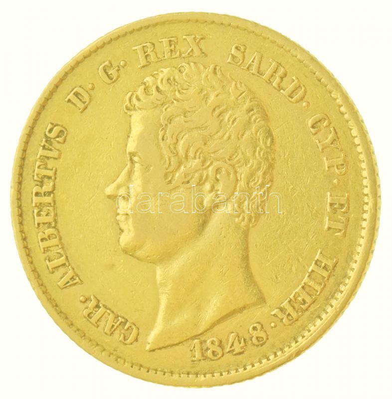 Olasz Államok / Szardínia 1848P 20L Au "Károly Albert" (6,43... https://www.darabanth.com/en/344-Online-auction/344.0/Numismatics/Gold-coins-and-commemorative-medallions~1000011/Olasz-Allamok-Szardinia-1848P-20L-Au-Karoly-Albert-6-43g0900-T2-2-kis-ph-Italian-Stat~II1943794