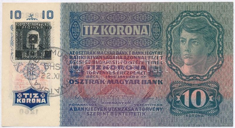 https://www.darabanth.com/en/344-Online-auction/344.0/Numismatics/Hungarian-Banknotes~1000007/1915-10K-piros-Deutschosterreich-es-hamis-Bosznia-Hercegovina-belyeggel-es-SHS-belyegze~II1941320