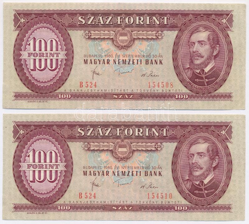 https://www.darabanth.com/en/344-Online-auction/344.0/Numismatics/Hungarian-Banknotes~1000007/1980-100Ft-2x-sorszamkovetok-TIII-szep-papir-F34~II1949525