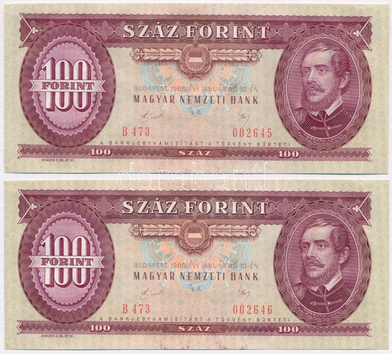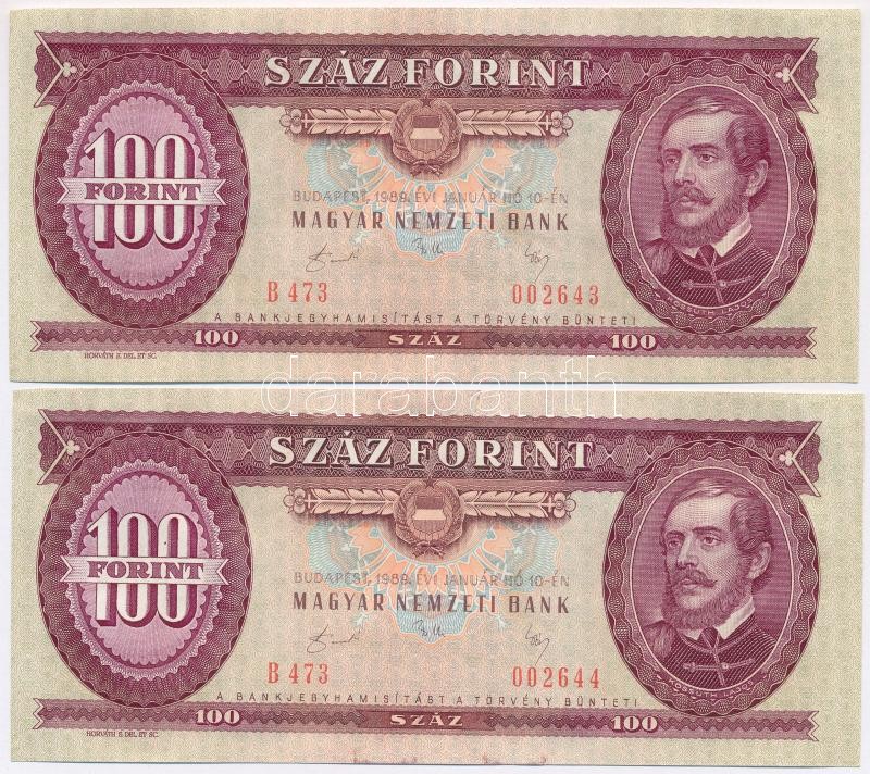 1989. 100Ft (4x) sorszámkövetők, nyomdai festékfoltok T:I-,II