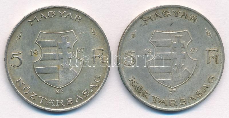 1947. 5Ft Ag (2x) "Kossuth" T:2- patina