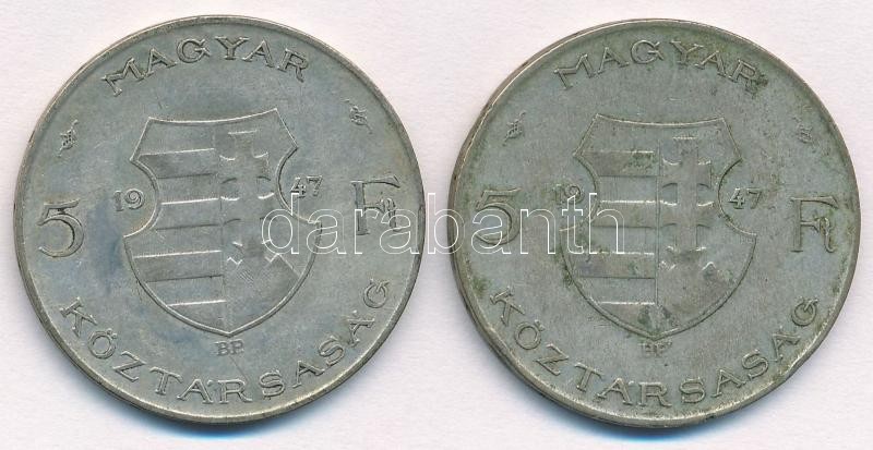 1947. 5Ft Ag "Kossuth" (2x) T:2-