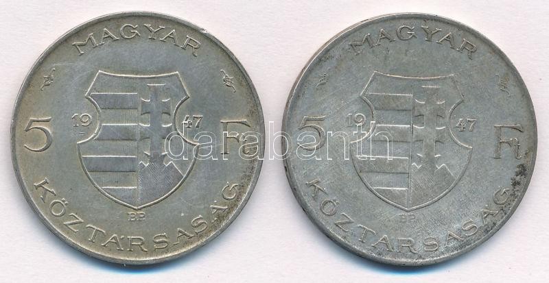 1947. 5Ft Ag "Kossuth" (2x) T:2-,3