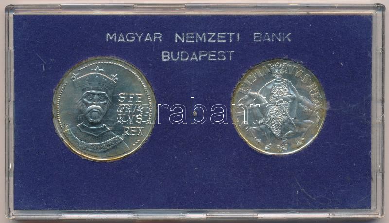 1972. 50Ft Ag + 100Ft Ag "Szent István" pár, eredeti kék plasztiktokban T:BU patina