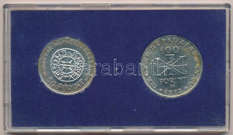 https://www.darabanth.com/en/344-Online-auction/344.0/Numismatics/Hungarian-coins-and-coins-with-Hungarian-mint-marks~1000008/1972-50Ft-Ag-plus-100Ft-Ag-Szent-Istvan-par-eredeti-kek-plasztiktokban-TBU-patina-Adamo-EM38-~II1949662