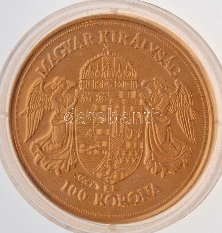 1908KB 100K "Ferenc József" aranyozott Cu modern utánveret "COPY" beütéssel (38,5mm) T:PP ujjlenyomat