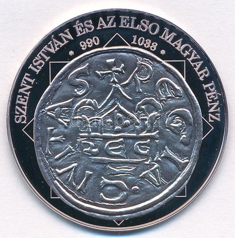 DN "A magyar nemzet pénzérméi - Szent István és az első magyar pénz 997-1038" Ag emlékérem tanúsítvánnyal (10,37g/0.999/35mm) T:PP kis patina