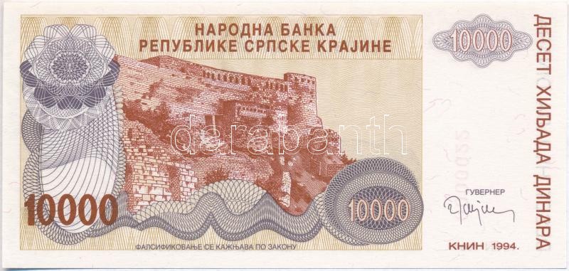 Horvátország / Krajna Szerb Köztársaság 1994. 10.000D alacsony "0... https://www.darabanth.com/en/344-Online-auction/344.0/Numismatics/Worldwide-banknotes~1000012/Horvatorszag-Krajna-Szerb-Koztarsasag-1994-10000D-alacsony-0000022-sorszammal-sorozatje~II1948939