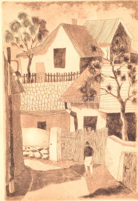 Ábrahám Rafael (1929-2014): Szentendre. Rézkarc, papír, jelzett, üvege...