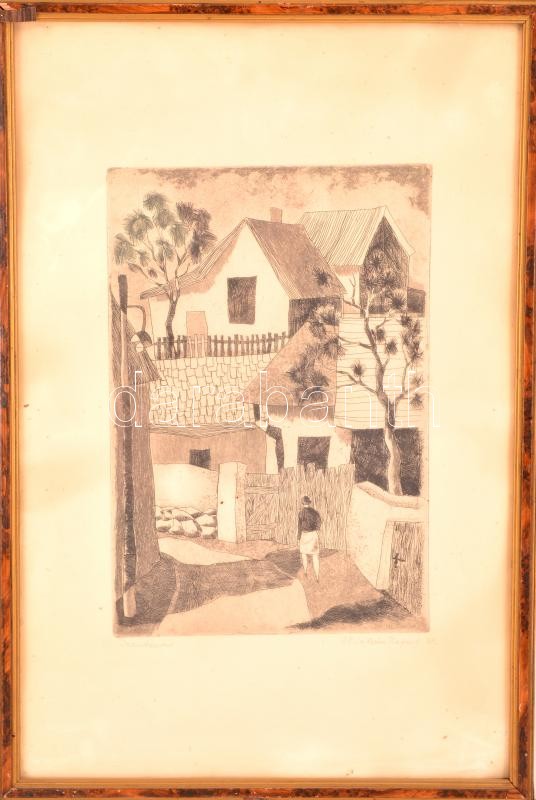 Ábrahám Rafael (1929-2014): Szentendre. Rézkarc, papír, jelzett, üvegezett keretben, 28×19 cm