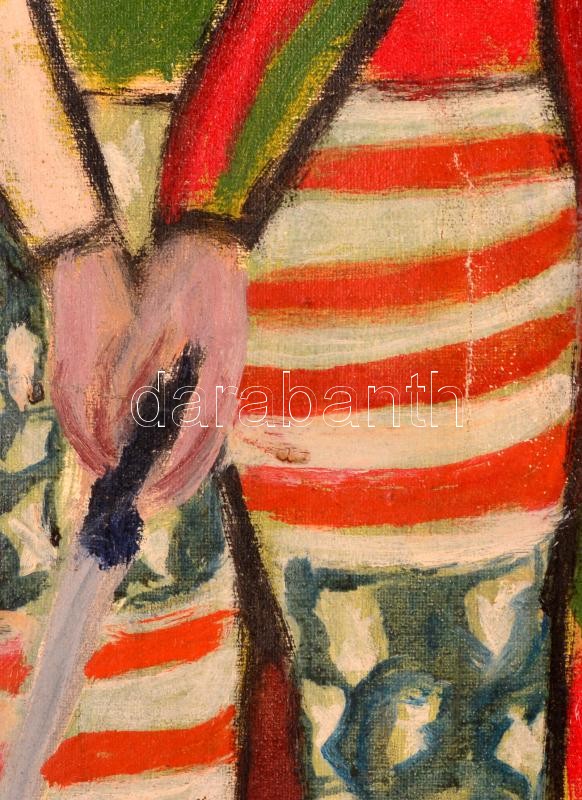 Anna jelzéssel: Hátsó szándékok. Olaj, vászon (javított), keretben, 70×40 cm
