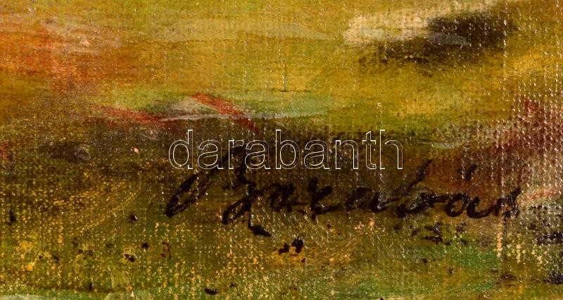 Barabás jelzéssel: Alpesi táj. Olaj, vászon, festék kopásokkal, keretben, 35×45 cm