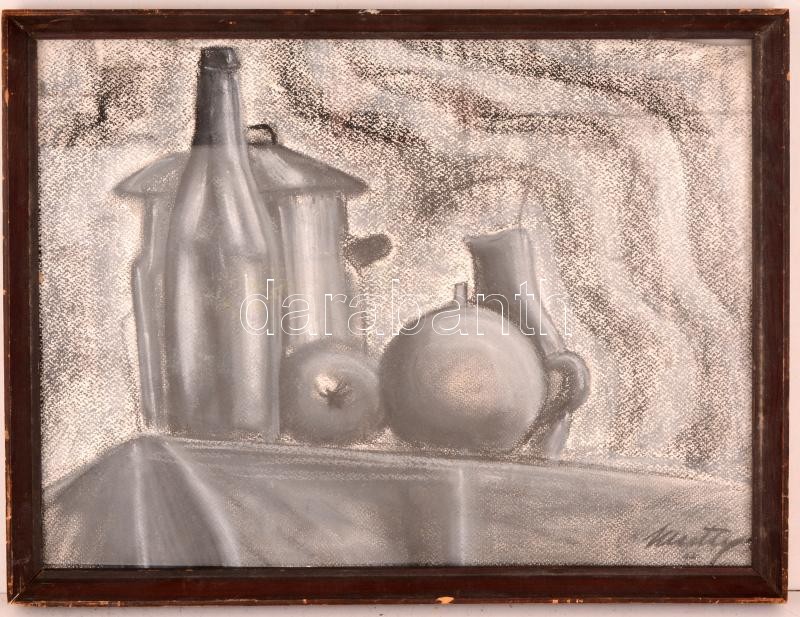 Kmetty jelzéssel: Asztali csendélet. Szén, papír, üvegezett keretben, ...