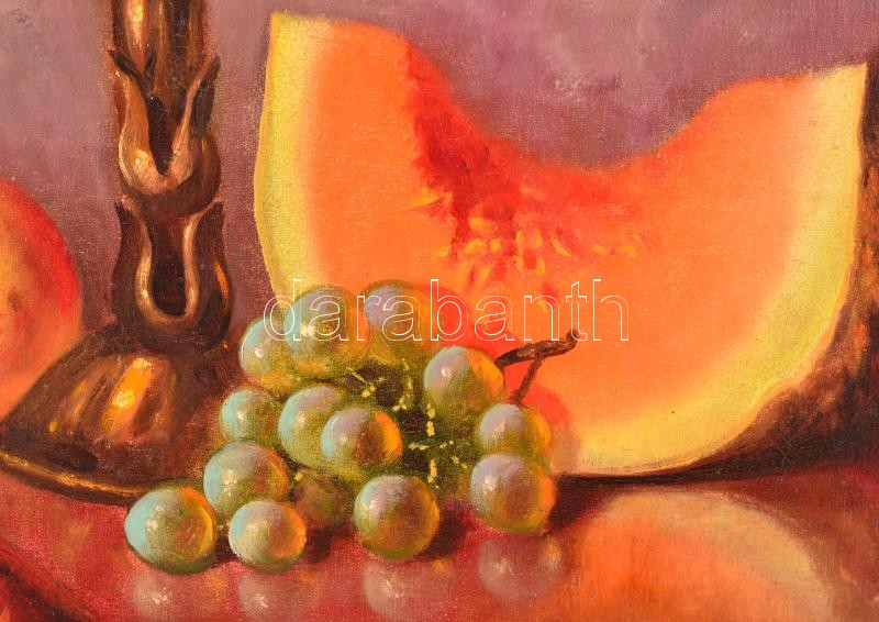 Pusztai jelzéssel: Gyümölcsös csendélet. Olaj, vászon, keretben, 60×50 cm