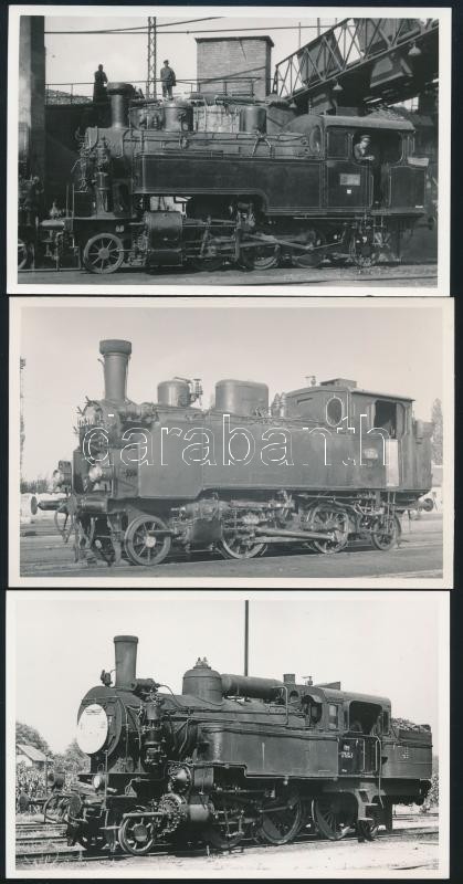 MÁV 275.510 és 376.104 sorozatszámú mozdonyok, valamint ÖBB mozdony, modern előhívások, 3 db, 9×14 cm / locomotives, 3 modern copies of vintage photos