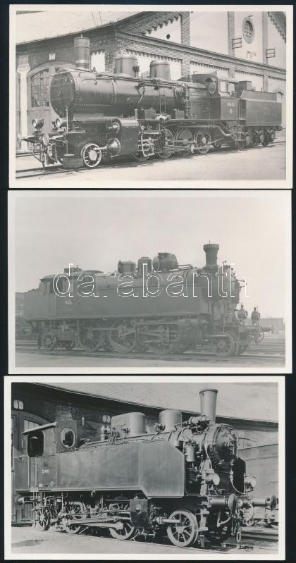 MÁV 342.831, 22-1033 és 140.06 mozdonyok, 3 db modern előhívás, 9×14 cm / locomotives, 3 modern copies of vintage photos