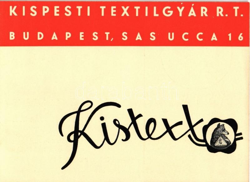 https://www.darabanth.com/en/344-Online-auction/344.0/Postcards/Advertisement~1500078/Kistext-Kispesti-Textilgyar-Rt-reklamlapja-Budapest-V-Sas-utca-16-Hungarian-textile-factory-~II1940936