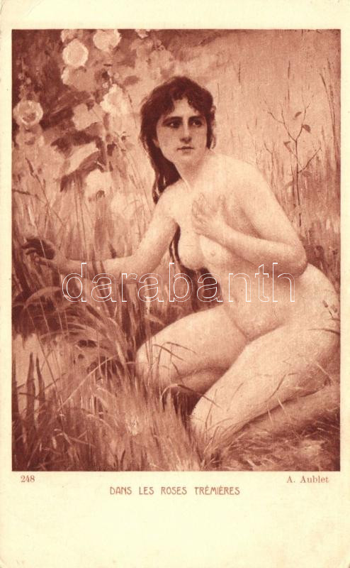 'Dans les roses trémiéres' erotic art postcard s: A. Aublet ...