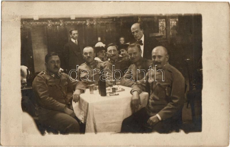 Budapest VI. Sorrento Nagy Kávéház és Étterem, katonák társasága az as...