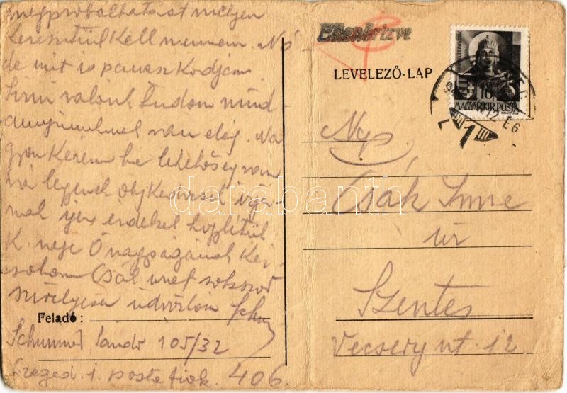 Description: 1944 Schumm. Sándor zsidó 105/32-es KMSZ (közérdekű munkaszolgálatos) levele Csák Imre úrnak a szegedi munkatáborból / WWII Letter of a Jewish labor serviceman from the labor camp of Szeged Judaica (fa)