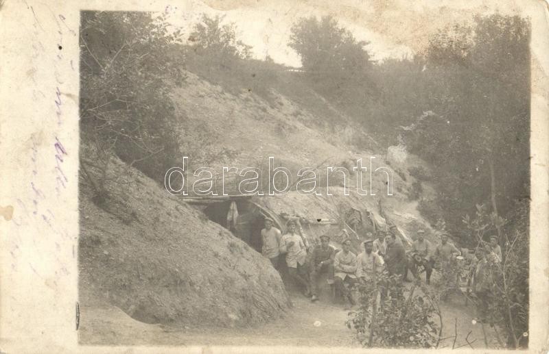 1915 Osztrák-magyar katonák földbe vájt bunkernél / WWI Austro-Hungarian soldiers next to the trench, photo (fl)